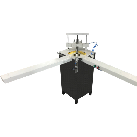 Then we arrived at the Semi Automatic Corner Cleaning Machine. This machine cleans the excess burnishings of the Upvc Profile corners after welding. The problem that these Semi Automatic Corner cleaning machines have is that the depth of the corner cleaning groove made on top of the profile cannot be adjusted according to your preferance.